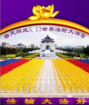 感谢师尊慈悲救度!洪恩浩荡! 恭祝慈悲伟大的师尊生日快乐! 祝贺法轮大法洪传二十四周年! 普天同庆“五一三”第十七届世界法轮大法日! 祝贺5.13世界法轮大法日暨师尊六十五岁华诞!
