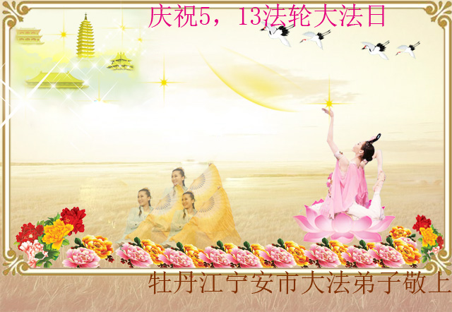 庆祝5.13世界法轮大法日! 师尊佛恩浩荡 弟子唯有精進再精進。 黑龙江省牡丹江宁安市大法弟子敬祝