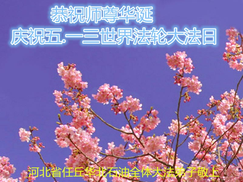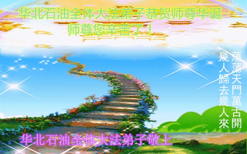 恭祝师尊生日快乐!庆祝世界法轮大法日! 感谢师尊慈悲苦度!师父您辛苦了!弟子一定做好三件事走好最后的路! 河北省沧州市任丘市华北石油全体大法弟子