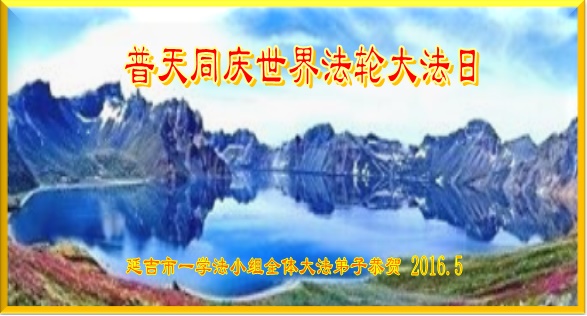 二零一六年五月十三日是法轮大法弘传世界二十四周年暨第十七届“世界法轮大法日”,也是师父的六十五华诞。我们是武汉地区的一个学法小组,平时每个周末我们在一起学法两小时,年岁是四十至八十岁的几个不同 职业的学员,他们有:教师、干部、公务员、医务人员、工人等。我们都相互尊重、信任,共同提高,按照大法“真、善、忍”使自己道德品质提高,做师父的实修弟子。在这光辉的日子,我们小组全体学员,恭祝慈悲 伟大的师尊六十五华诞,普天同庆世界法轮大法日。跪谢师父慈悲救度,做师父的真修弟子! 武汉地区一学法小组 2016/5/8 吉林市龙潭区一小学法小组恭贺法轮大法日!