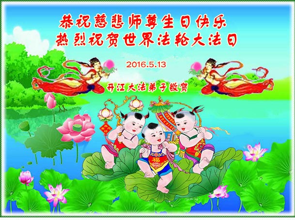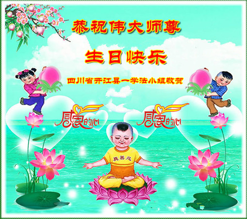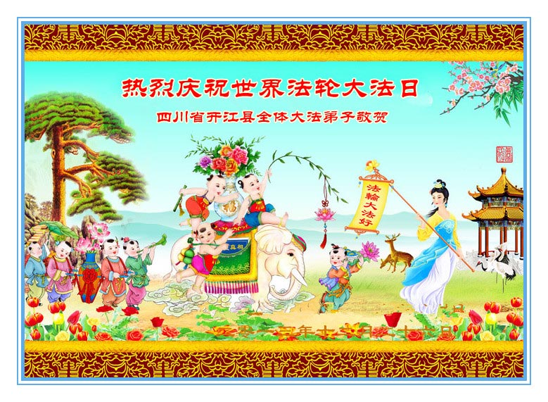 四川省开江县全体大法弟子热烈庆祝世界法轮大法日! 开江大法弟子恭祝慈悲师尊生日快乐!