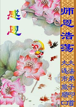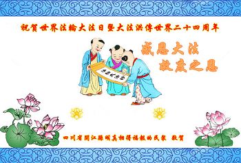 师父为弟子们每一步的提高付出的太多太多,弟子们知道对师父最好的感恩就是持之以恒的向内修自己。大法让弟子们学会要以真诚的心对待每一个同修,以慈悲的心对待所有众生,以宽厚的心对待误解,以理解的心圆容整体,以虔诚的心同化大法,以坚定和神圣的心兑现誓约!以圣洁的心一同回归天乡! 四川省德阳地区(旌阳、广汉、绵竹、什邡、中江、罗江)全体大法弟子叩拜恩师 旅顺大法弟子恭贺法轮大法日