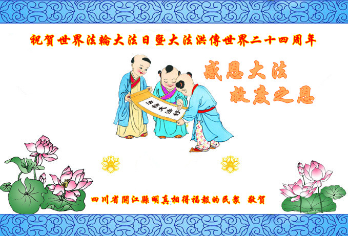 四川省达州市开江县明真相得福报的民众祝贺世界法轮大法日!