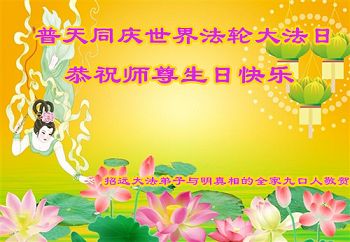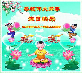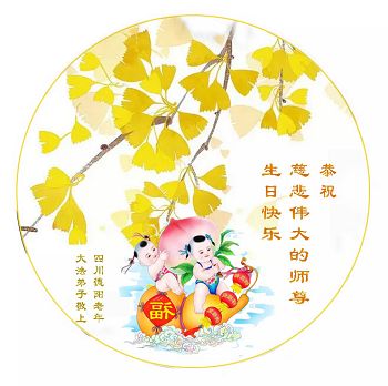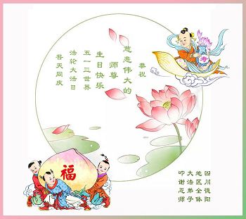 恭祝师尊生日快乐!感谢师尊救度之恩!弟子一定遵照师尊的教导做好三件事坚修到底。并祝世界法轮大法日! 四川大法弟子敬上 粤东大法弟子恭祝师尊华诞同庆“世界法轮大法日”!