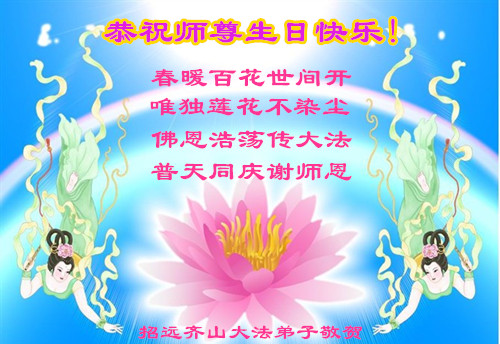 请慈悲的师尊放心,我们调兵山全体大法弟子一定遵照师尊的要求,做好三件事。放下人心,多救人,走好最后的路。 山东省烟台市招远市齐山一大法弟子恭贺师父生日快乐!