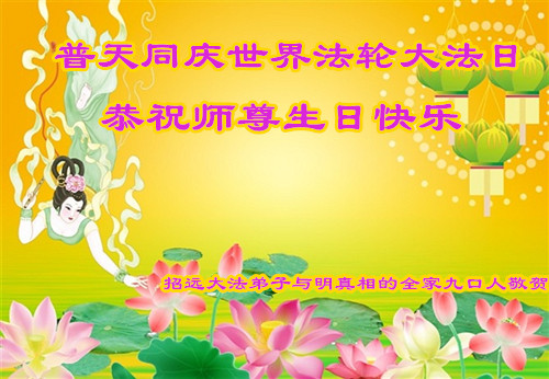 山东省烟台市招远市大法弟子与明真相全家九口人恭贺法轮大法日