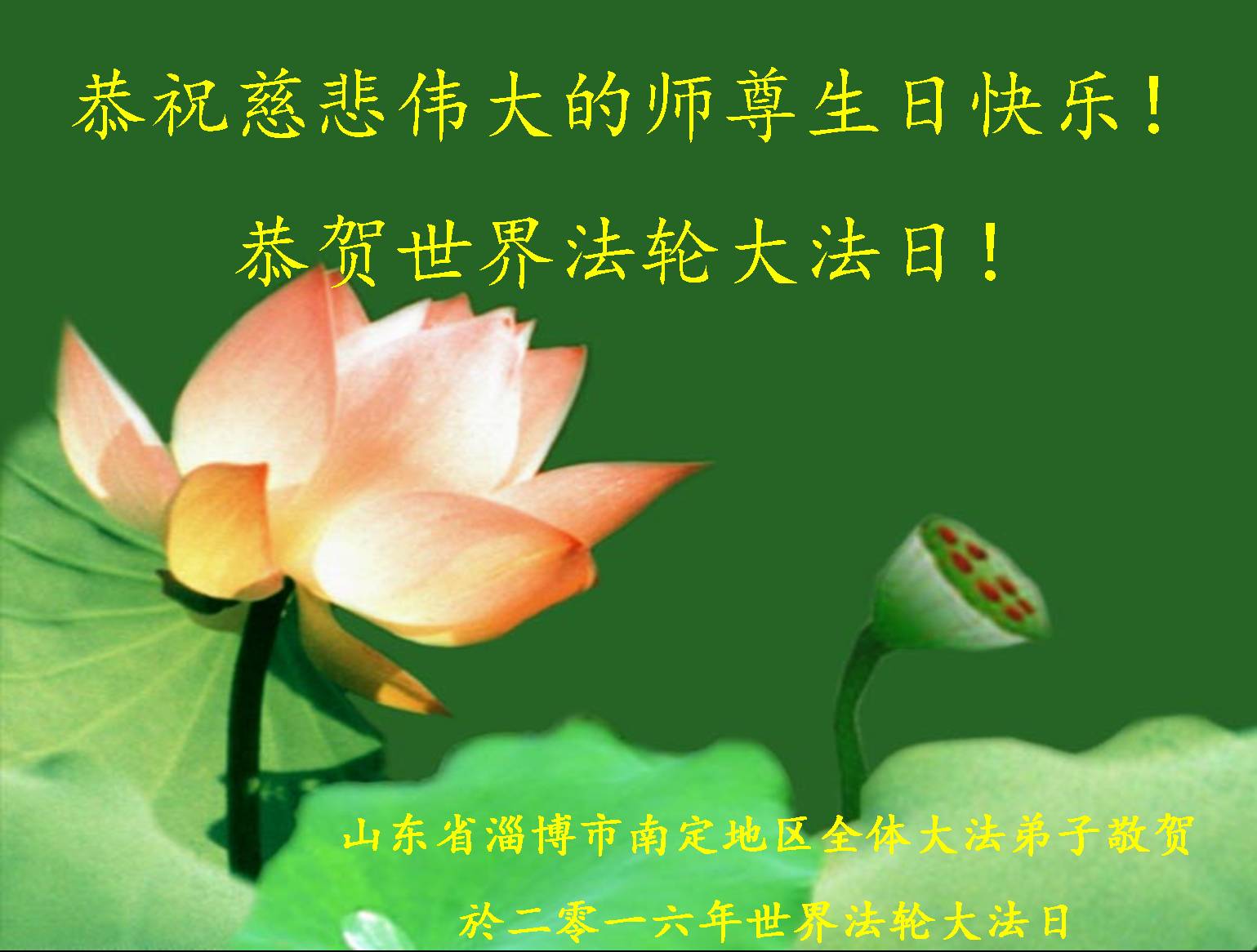 山东省淄博市南定地区全体大法弟子恭祝师尊生日快乐!