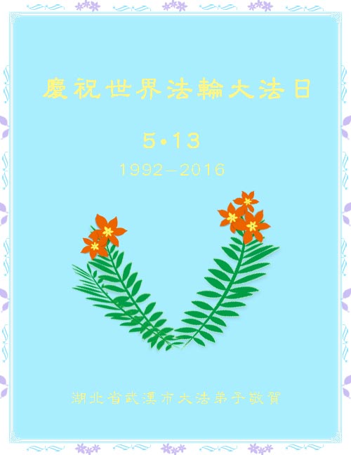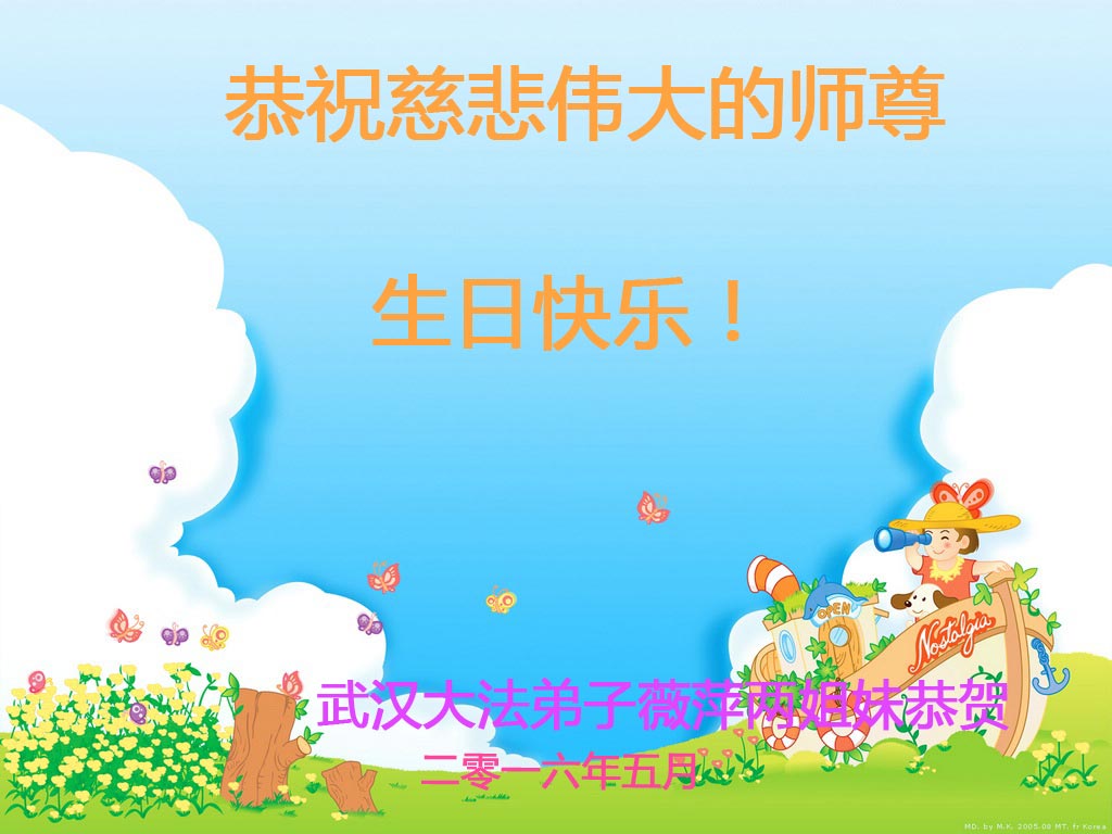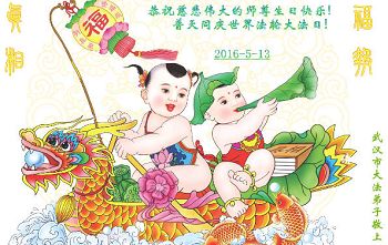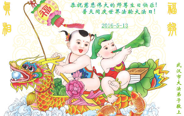 【明慧网二零一六年五月十二日】 湖北省武汉全体大法弟子恭祝伟大的师父生日快乐!庆祝世界法轮大法日!