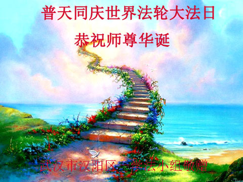 武汉市汉阳区一七人学法小组恭祝师尊生日快乐!我们做的虽然没有师父要求的那样好,但是我们是尽自己所能在助师正法,以后我们也不会懈怠,请师父放心,我们会走好最后的路。 湖北武汉市大法弟子恭贺世界法轮大法日