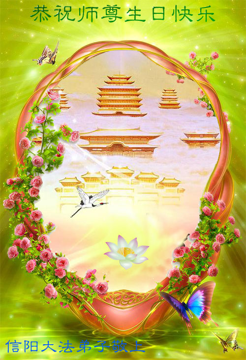 又一个世界法轮大法日到了,师父又为众生承受了一年!弟子一定要精進起来,学好法,修好自己,做好三件事。不辜负师父的慈悲苦度,圆满随师还! 河南南阳市大法弟子恭祝师尊生日快乐!