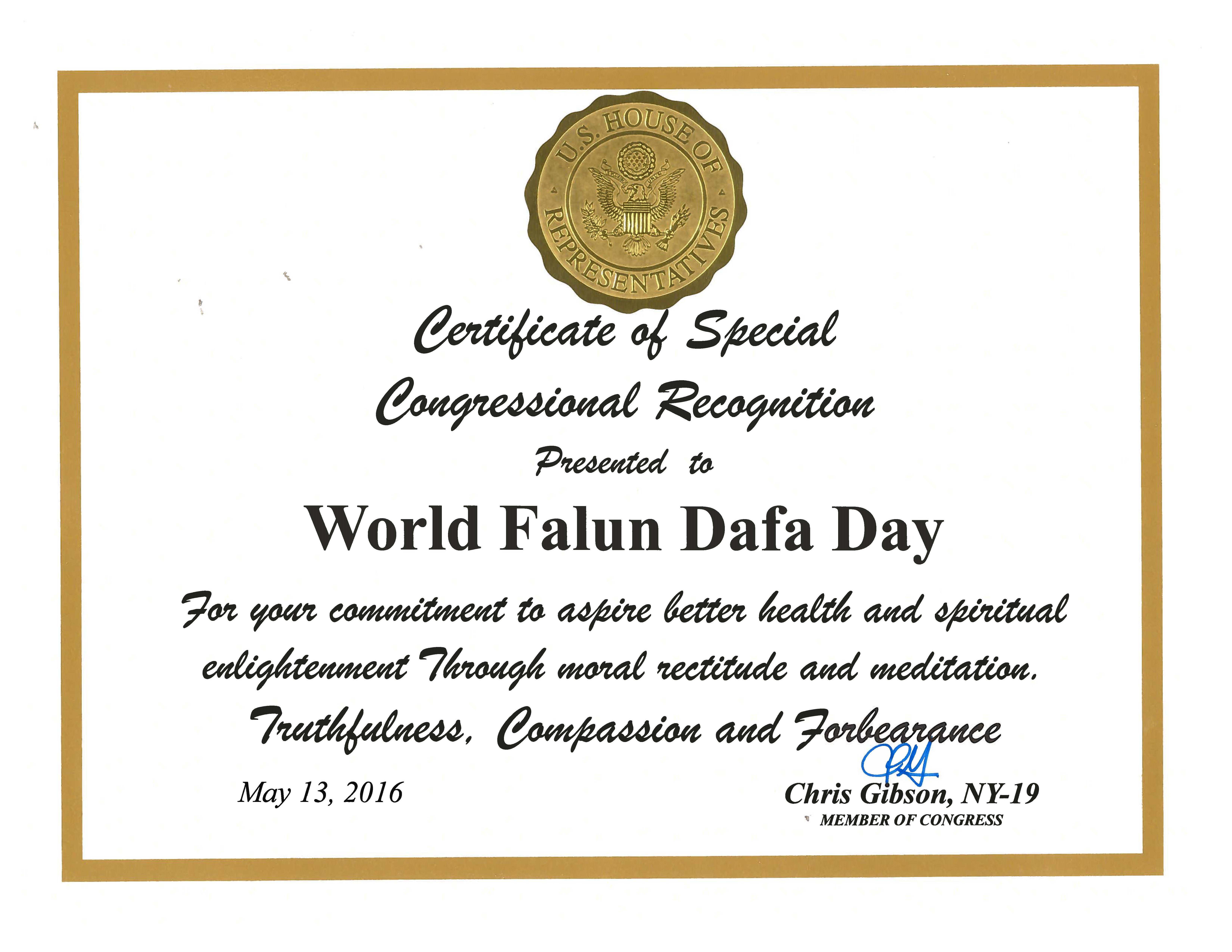 图2:第十九选区国会议员 Chris Gibson祝贺世界法轮大法日 |