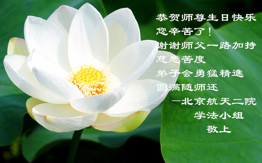 感恩师尊慈悲心 慈悲救度亿万人 世界法徒救人紧 无私无我讲真相 全球诉江大高潮 绳之以法江鬼灭 北京市科学研究院大法弟子 北京市回龙观大法弟子恭祝慈悲伟大的师父生日快乐!