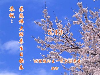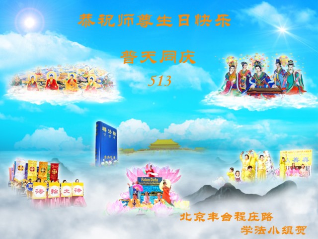 【明慧网二零一六年五月十三日】 北京丰台程庄路学法小组恭贺师尊生日快乐!