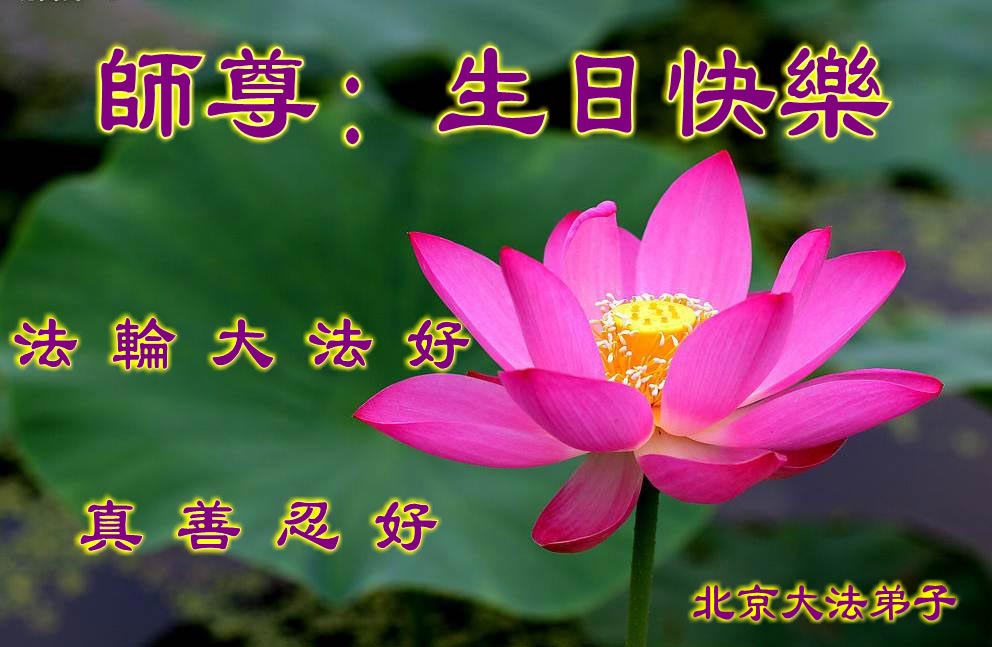 不修炼的爸爸也祝师父生日快乐!感谢师父的慈悲救度!在修炼的路上弟子更精進,做好三件事! 北京市顺义区大法弟子恭祝伟大慈悲的师父生日快乐!