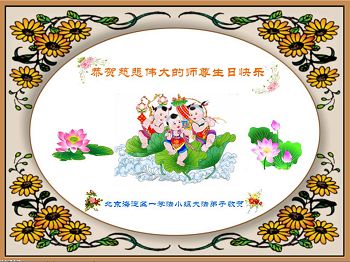 北京大法弟子恭祝师尊生日快乐!法轮大法好!真善忍好! 北京海淀区一学法小组恭贺慈悲伟大的师尊生日快乐!