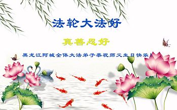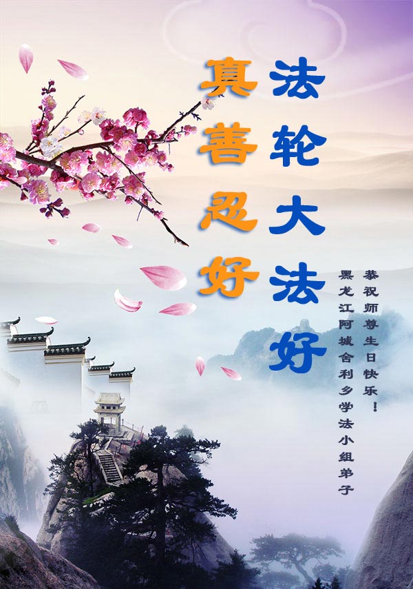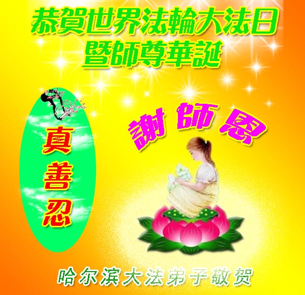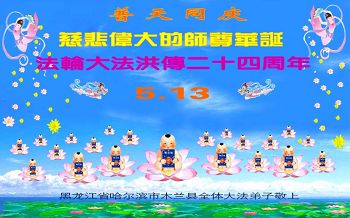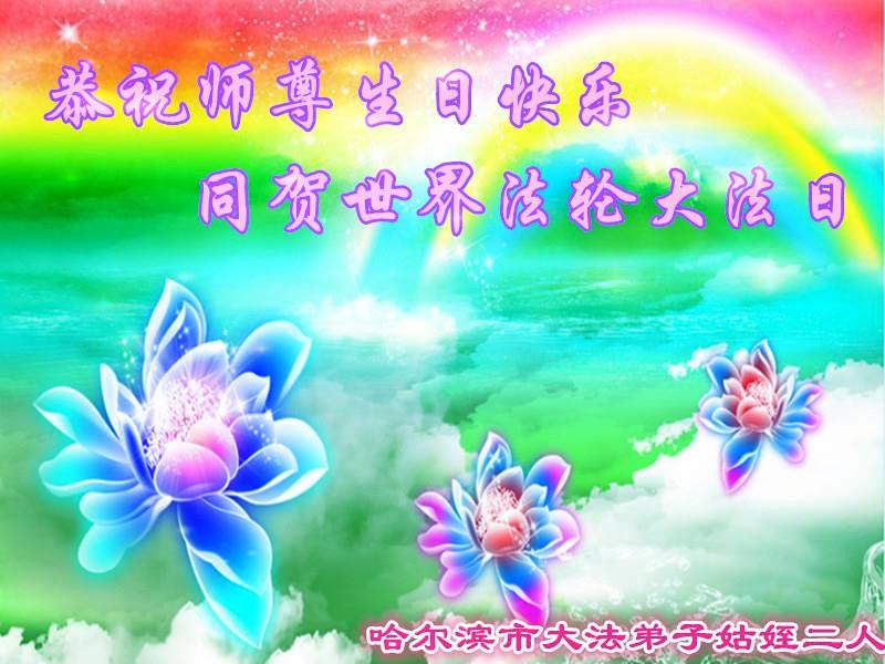 黑龙江省哈尔滨市大法弟子二人恭祝师尊华诞及世界法轮大法日!