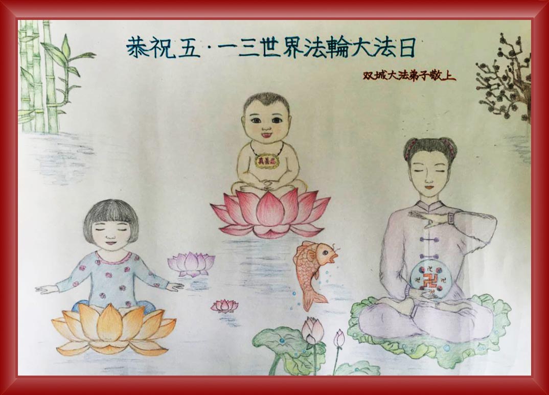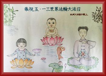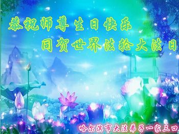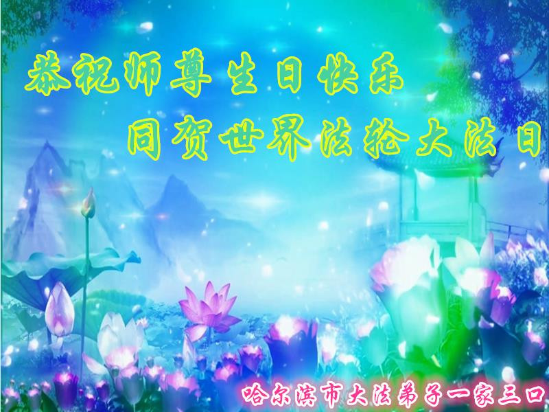 恭祝师尊华诞! 同贺世界法轮大法日! 黑龙江省哈尔滨市大法弟子一家三口恭祝师尊华诞及世界法轮大法日!
