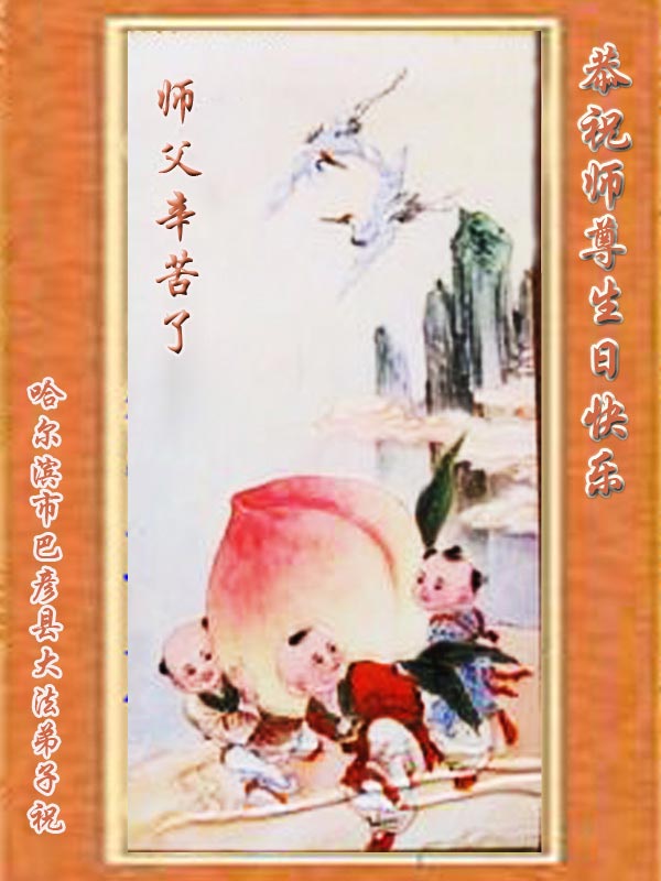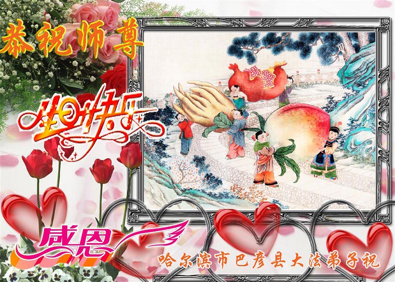 感谢慈悲伟大师父的救度! 哈尔滨大法弟子 黑龙江省哈尔滨市宾县大法弟子恭祝师父生日快乐!