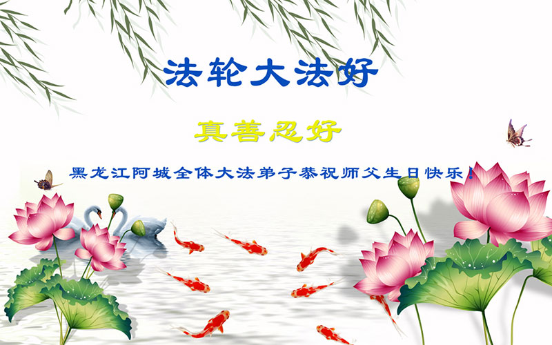 黑龙江省哈尔滨市阿城市区大法弟子恭祝师尊生日快乐!