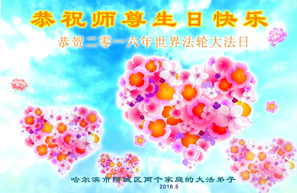 【明慧网二零一六年五月十三日】 黑龙江哈尔滨木兰县大法弟子遥祝师尊生日快乐!