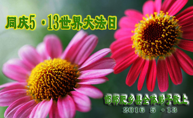 河北夫妻大法弟子同庆513世界法轮大法日! 同贺法轮大法洪传二十四周年同祝师尊生日快乐! 河北省邯郸全体大法弟子恭祝师尊生日快乐!