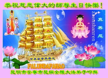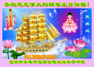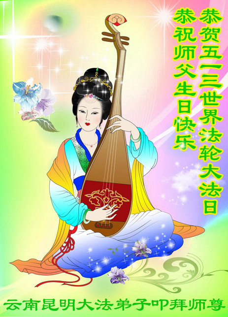云南昆明一大法弟子恭祝师父生日快乐!恭贺世界法轮大法日!