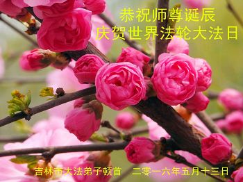 【明慧网二零一六年五月十三日】 吉林市大法弟子恭贺世界法轮大法日暨师尊华诞!