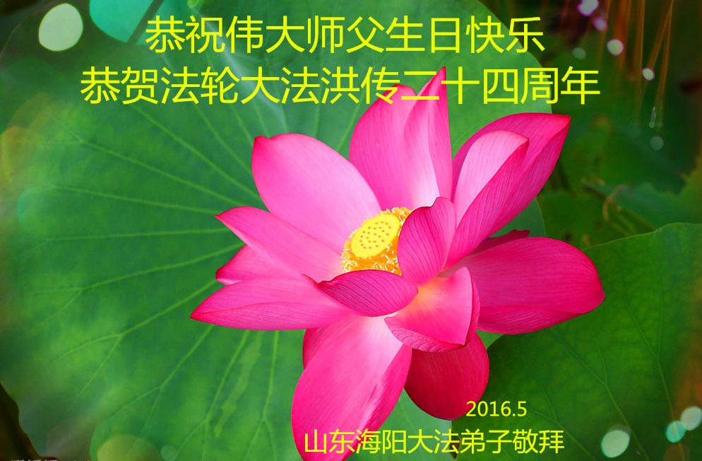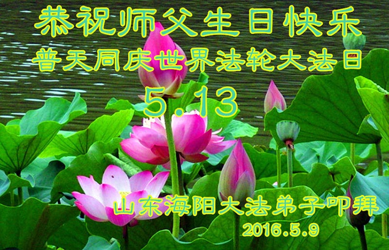 山东省烟台市海阳市大法弟子恭祝慈悲伟大的师父生日快乐!普天同庆5.13世界法轮大法日!