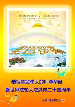 吉林省长春大法弟子恭祝慈悲伟大的师尊华诞暨世界法轮大法洪传二十四周年!