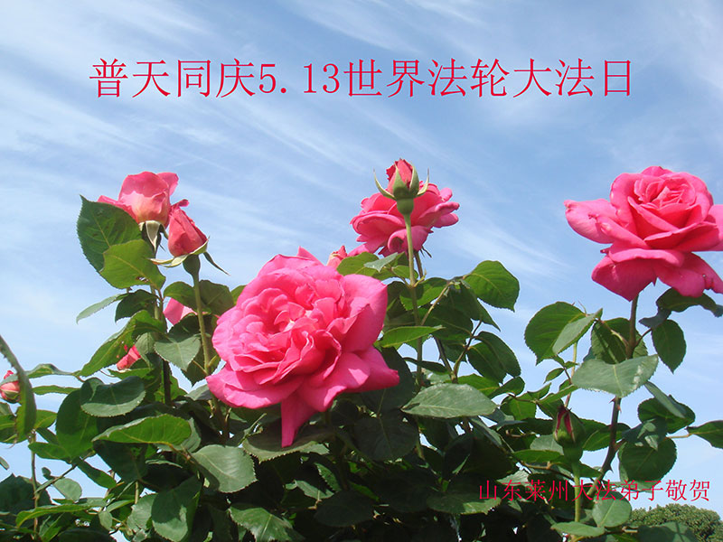 喜迎圣日“五一三” 天上人间节日欢 众生能有今天日 师尊慈悲挽狂澜 驱散乌云见天日 大法甘露润心田 为救苍生师尊苦 遥念恩师泪涟涟 红山弟子齐叩拜 祝愿师尊生日好 弟子抓紧多救人 兑现誓约了洪愿 河北大法弟子恭贺世界法轮大法日暨师尊华诞!师父您辛苦了!