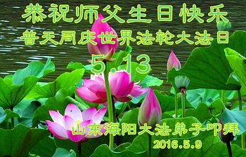 【明慧网二零一六年五月十三日】 辽宁阜新一大法弟子恭贺513世界法轮大法日暨师尊华诞!