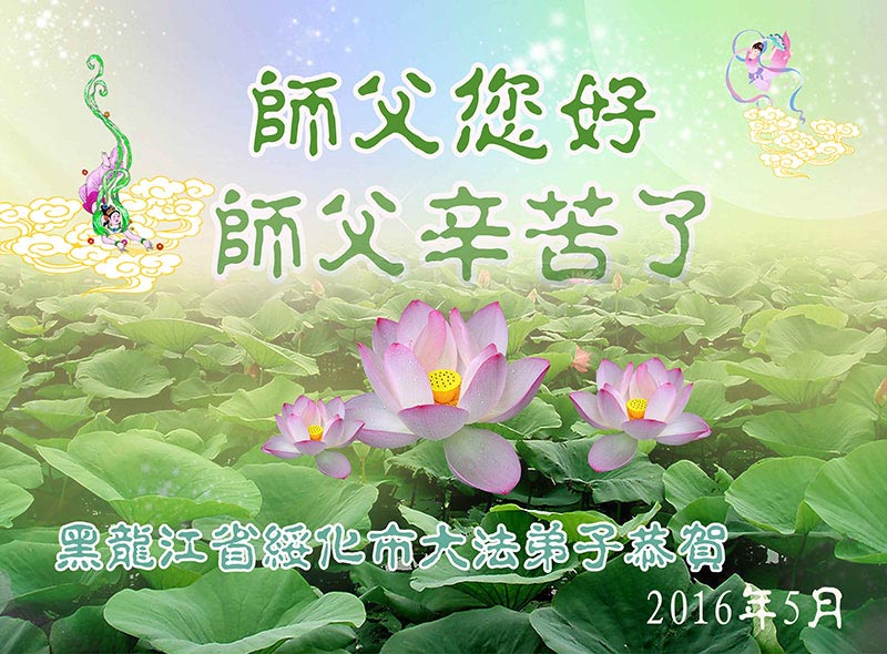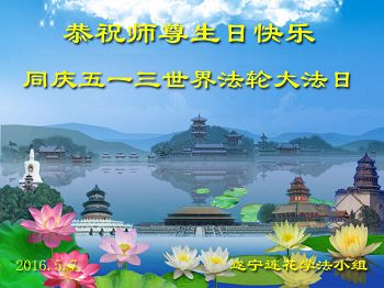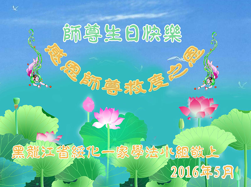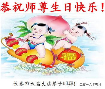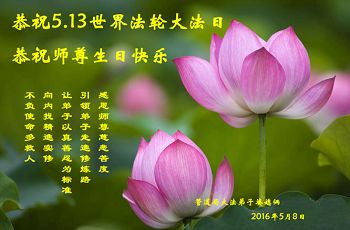 【明慧网二零一六年五月十三日】 吉林省长春市中东学法组大法弟子恭祝师尊生日快乐!普天同庆世界法轮大法日!