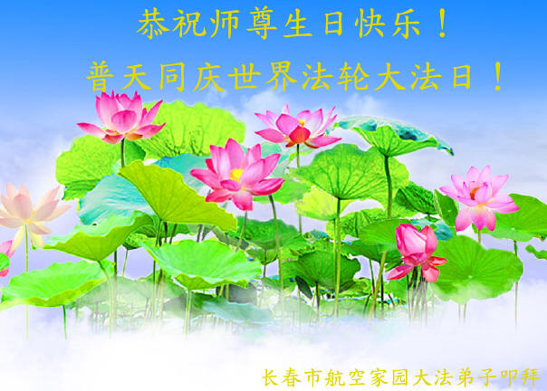 恭祝师尊生日快乐! 在这普天同庆世界法轮大法日暨师尊华诞到来之际,弟子全家人事事如意!愿更多世人能明白大法真相,还师尊清白!弟子一定努力做好“三件事”,让师父少一份操劳!感谢师尊慈悲救度! 吉林省长春市六名大法弟子恭祝师尊生日快乐!普天同庆世界法轮大法日!