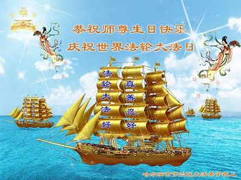 恭贺世界法轮大法日! 师父辛苦了, 弟子想念您!能成为助师正法的弟子,深感荣幸。二十年来,凭着对大法的坚信,风风雨雨走到今天,虽然被邪恶多次迫害,但信师信法的心是永远改变不了的。在正法的最后时刻,弟子牢记师尊的教诲,不懈怠,努力做好三件事,完成自己的使命,圆满跟师父回家。弟子叩拜师尊! 四川遂宁市大法弟子夫妻二人向慈悲伟大的师尊问好!恭祝师尊生日快乐!普天同庆世界法轮大法日!