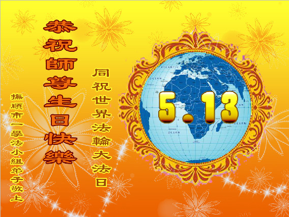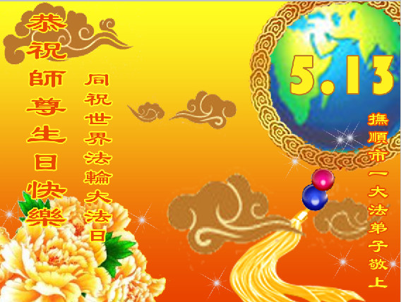 【明慧网二零一六年五月十三日】 辽宁省抚顺一大法弟子恭祝师尊生日快乐!同祝法轮大法日!