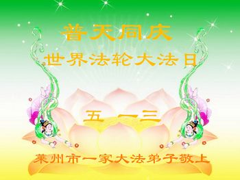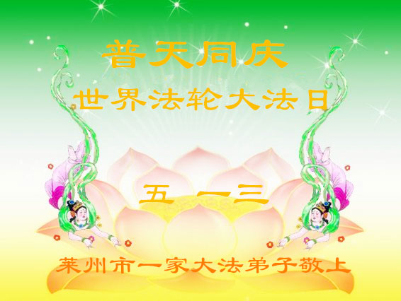 山东省烟台市莱州市一家大法弟子普天同庆世界法轮大法日!