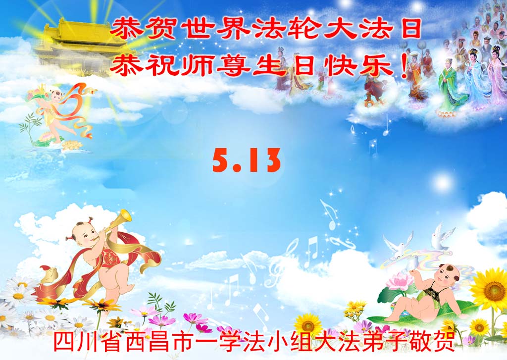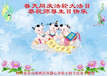 四川省凉山州西昌市一学法小组大法弟子恭贺世界法轮大法日!恭祝师尊生日快乐!