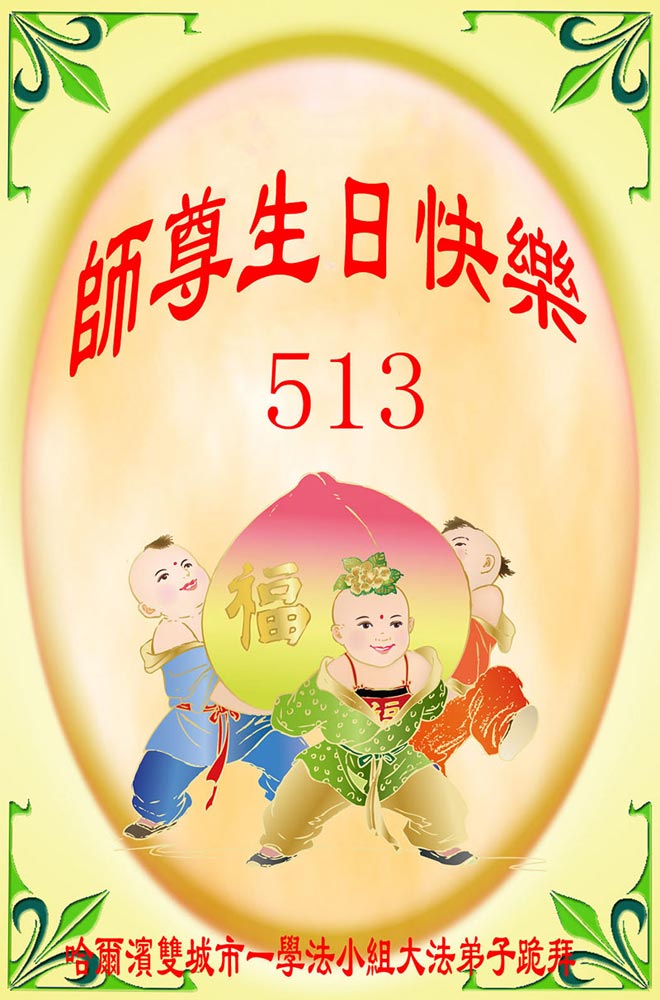 黑龙江省哈尔滨双城市一学法小组大法弟子恭祝慈悲伟大的师尊生日快乐暨世界法轮大法日!