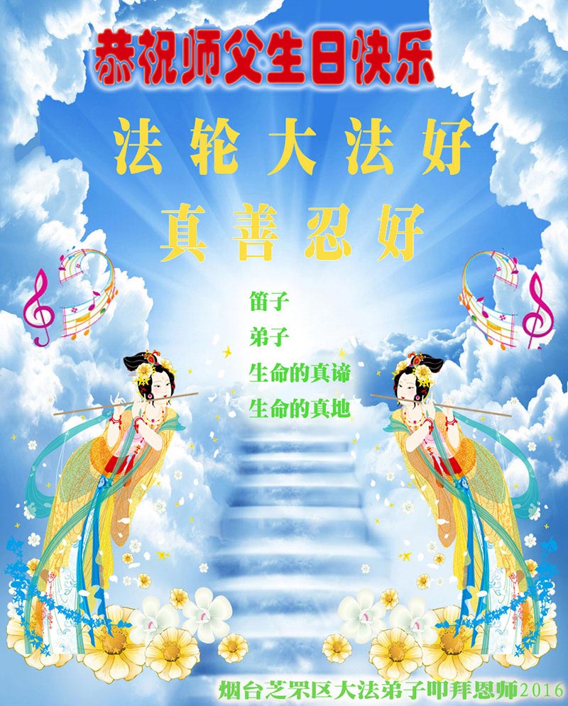 山东省烟台市芝罘区大法弟子恭祝师父生日快乐!