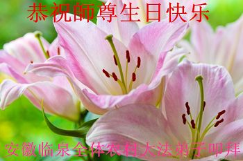 安徽省淮南大法弟子一学法小组大法弟子恭贺师父华诞暨世界法轮大法日!