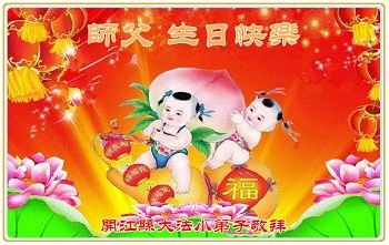 恭贺师尊生日快乐! 谢谢师父! 河南郑州大法小弟子叩拜 重庆市夫妻同修大法弟子携两岁大法小弟子恭祝师尊生日快乐!