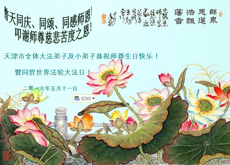 天津市全体大法弟子与小弟子及明真相家属恭贺法轮大法日暨师尊华诞!