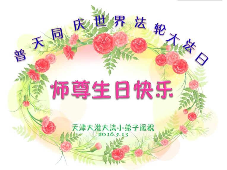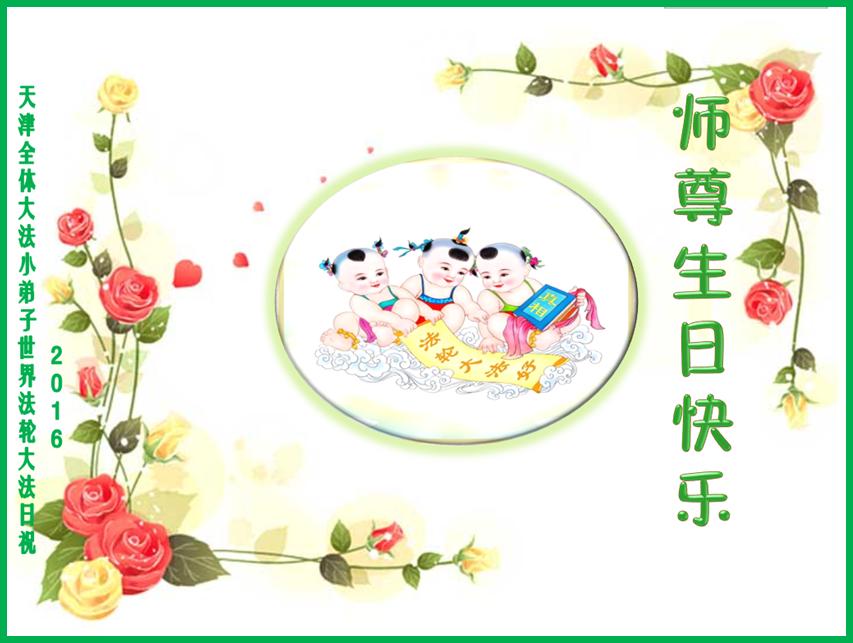 法轮大法使我绝处逢生,给予我新的生命,也让我和家人共同沐浴大法的恩泽中,谢谢慈悲的师父将佛法广传众生。又一年的世界法轮大法日,弟子多想见到您。在世间宝贵的日子里,弟子会带好小弟子,做好三件事,让师父少一份操劳,多一份欣慰!弟子和家人叩拜师父! 天津全体大法小弟子恭祝师尊生日快乐!