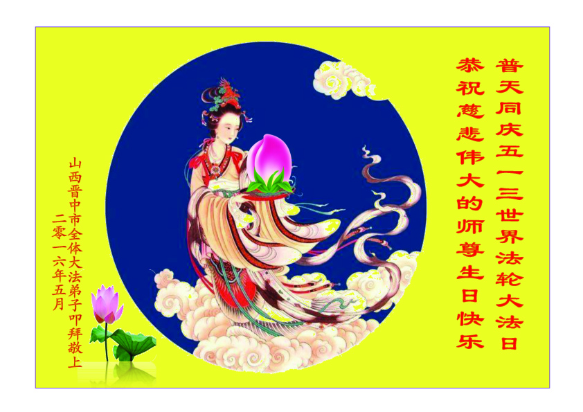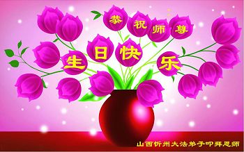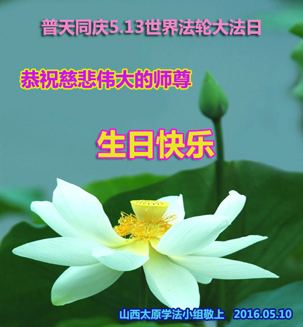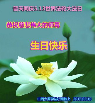 【明慧网二零一六年五月十三日】 山西省太原一家大法弟子恭祝师尊生日快乐!
