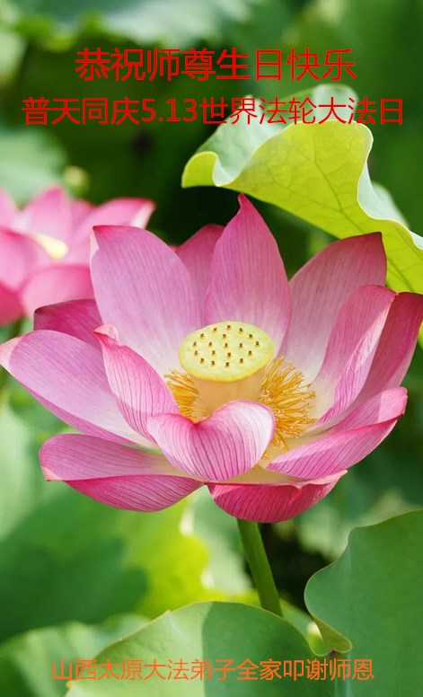 在这普天同庆世界法轮大法日十七周年的日子里,山西临汾大法弟子恭祝伟大的师尊生日快乐! 山西太原我们六人学法小组恭祝慈悲的师尊生日快乐!