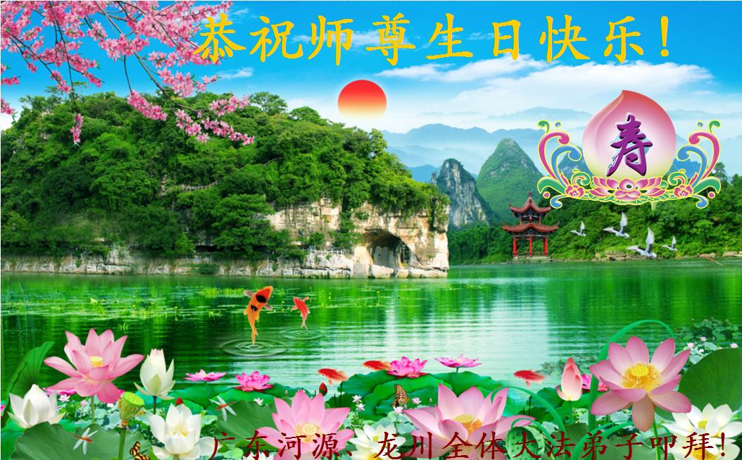 普天同庆世界法轮大法日暨洪传二十四周年! 广东河源、龙川的全体大法弟子恭祝师尊生日快乐!