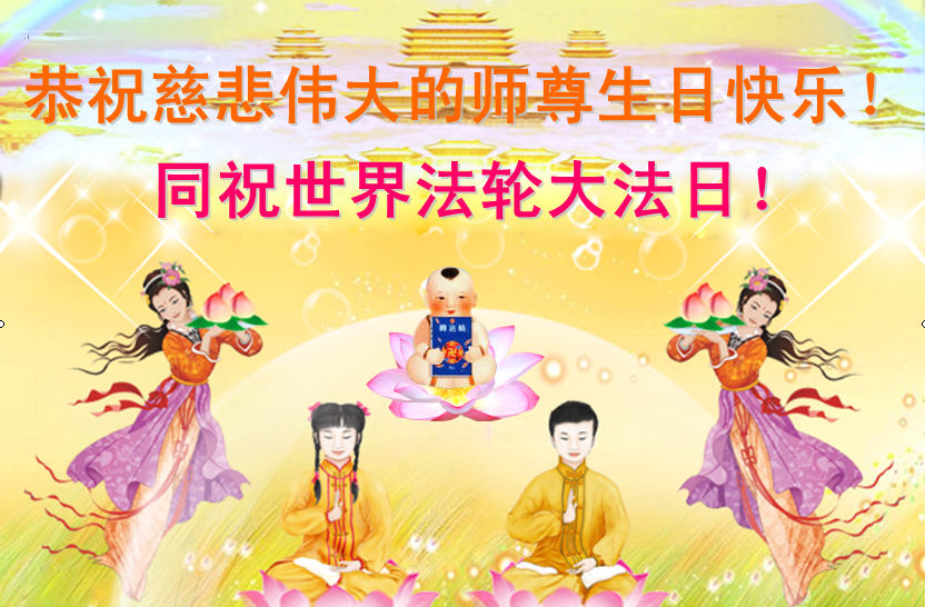 在这普天同庆的日子里,弟子们唯愿精進实修,以救人为己任,平稳走正修炼的路,兑现大法弟子的誓约,圆满随师还,茂名市全体大法弟子叩拜师尊!合十 广东省茂名市河东区一学法小组大法弟子恭贺世界法轮大法日暨师尊华诞!