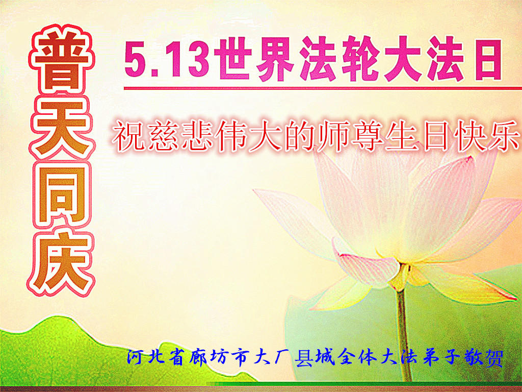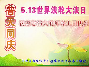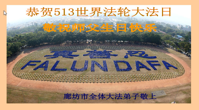 弟子感恩师尊的慈悲苦度! 河北省廊坊大法弟子恭贺师父华诞暨世界法轮大法日!