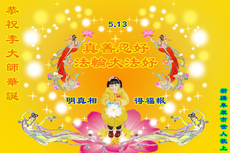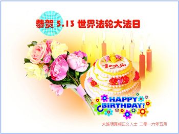 【明慧网二零一六年五月十三日】 大陆明真相正义人士恭祝李大师生日快乐!恭贺世界法轮大法日!