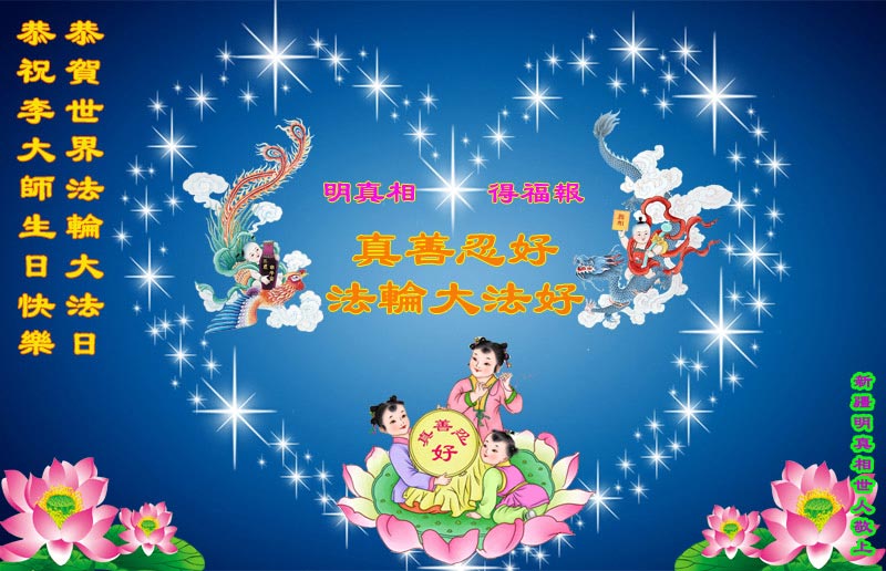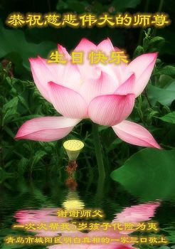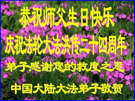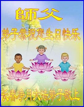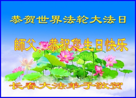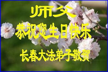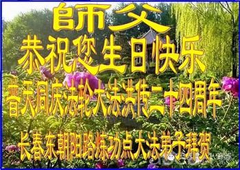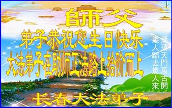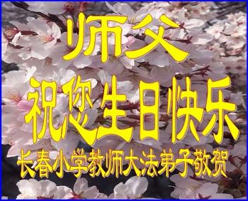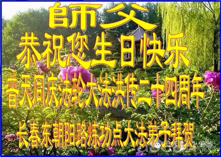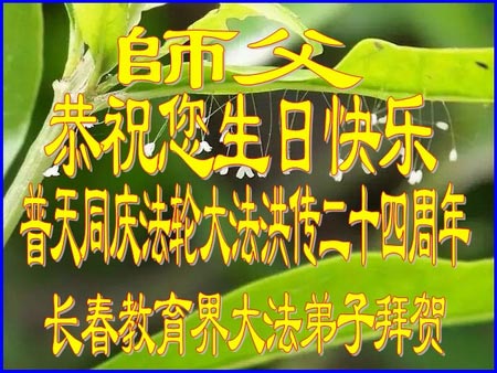 师父:恭祝您生日快乐! 普天同庆法轮大法或者二十四周年 长春教育界大法弟子拜贺